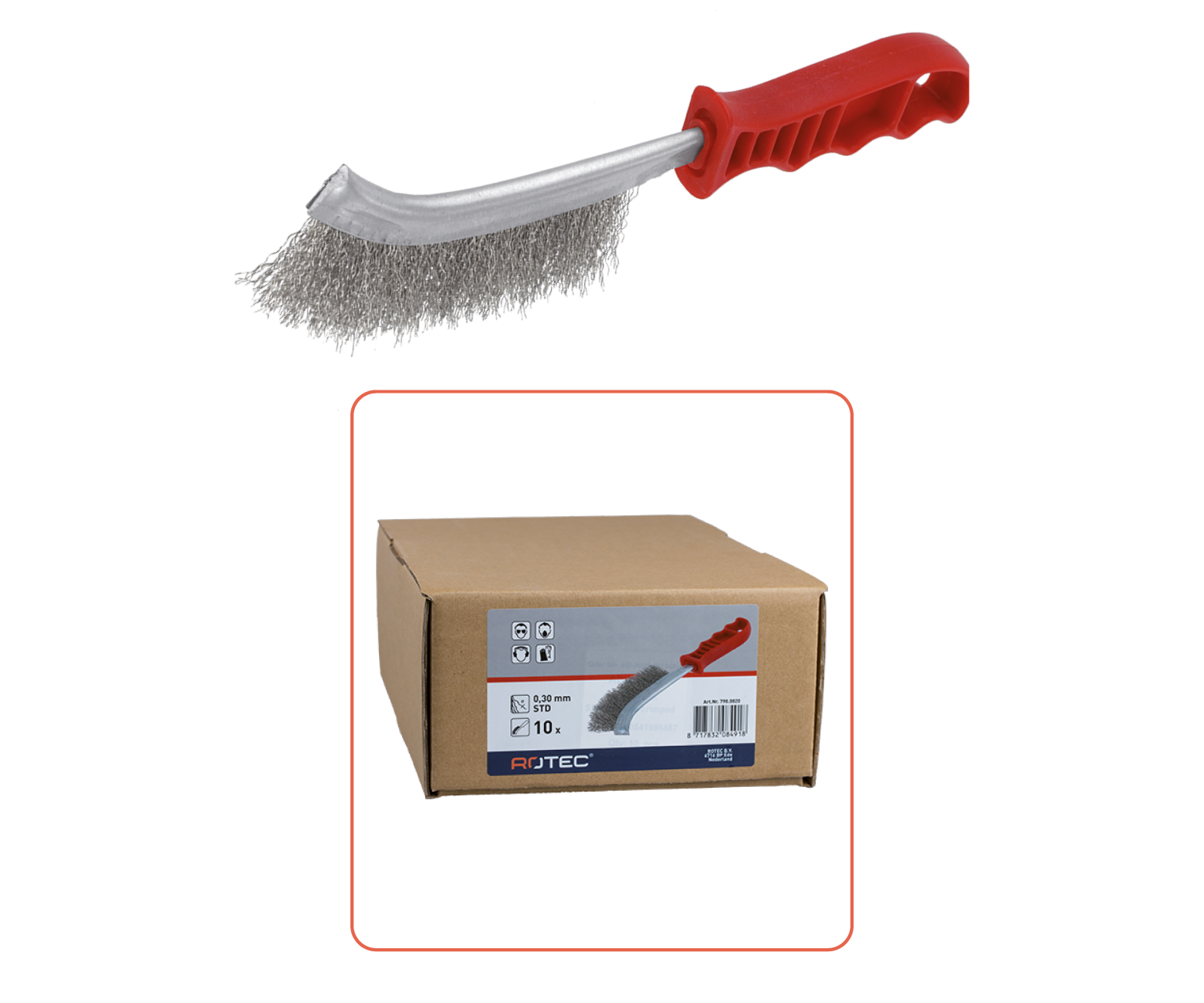 Brosses à main exécution coudée pour le nettoyage des endroits difficilement accesibles tels que les angles, coins, tuyaux.