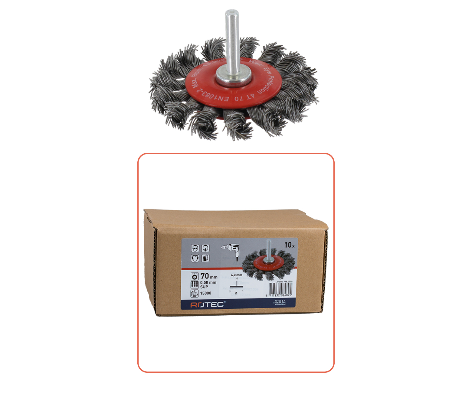 Stiftborstel voorzien van getordeerd recht kwaliteits staaldraad en 6mm stift. Geschikt voor industrieel gebruik op (accu-) boormachines, kolomboormachines en hoogtoerige machines.