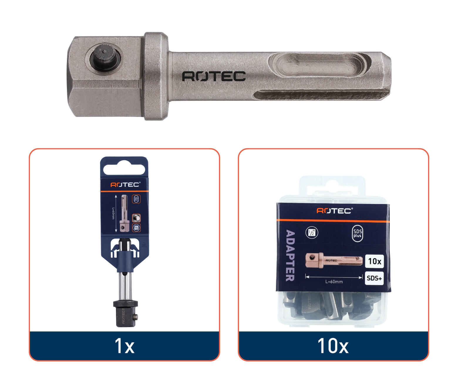 Adapter SDS-plus > 1/2" 4-knt. met stift